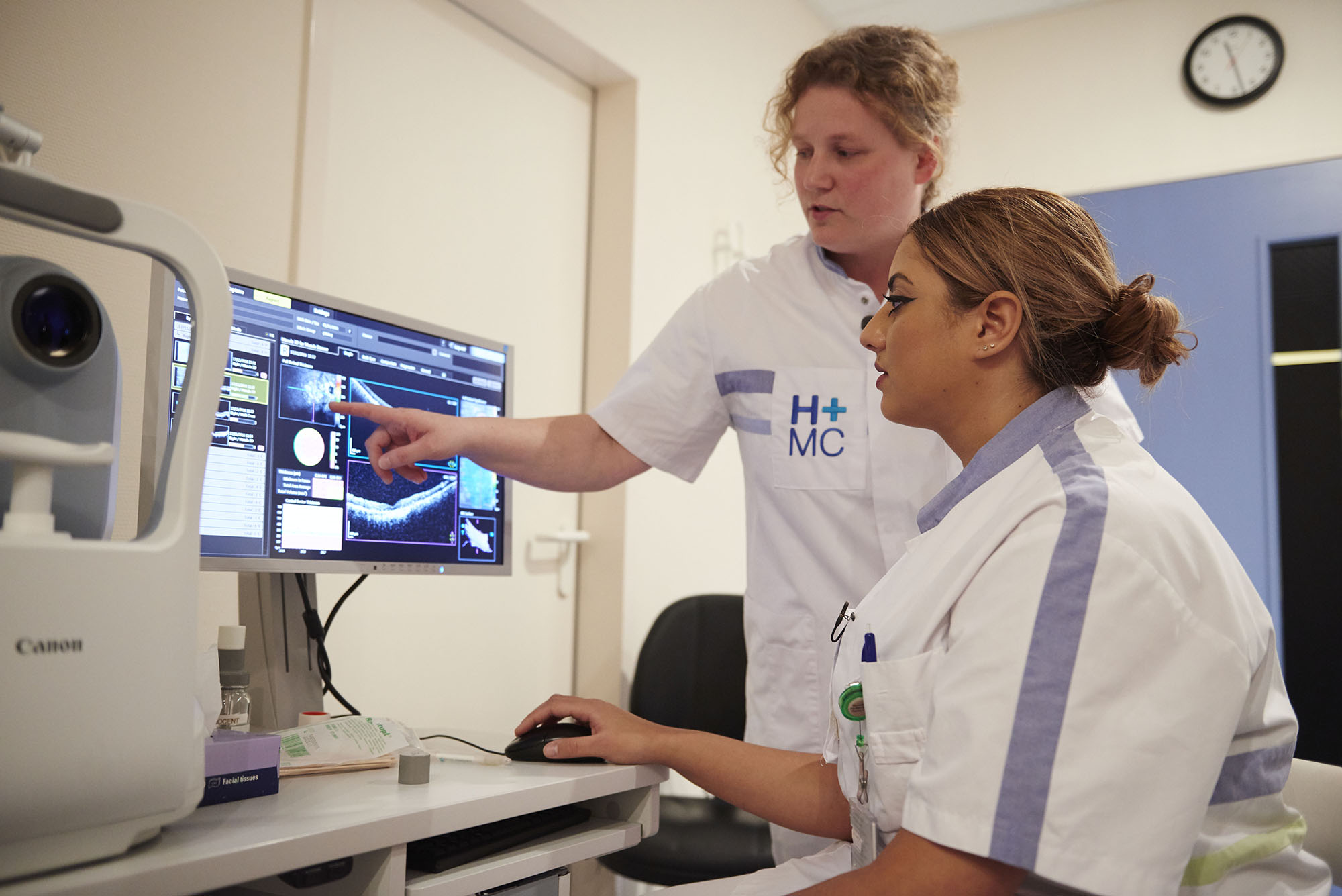 Hannah: Als TOA, technisch oogheelkundig assistent, assisteer je de oogarts. Dus je doet alle vooronderzoeken voordat ze bij de oogarts komen. Aanvullend doe je echo's, fotografie en scans. Je kan ook op de operatiekamer assisteren.